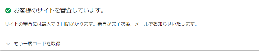 以前2次審査申込みとされていた画面です。【<head>タグを探し、その直後に張り付けてね】といった指令が下るので、速やかに遂行しましょう。