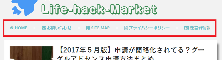 グローバルナビゲーションは下記画像にあるようなブログタイトル下にあるバーに付いたリンクのことで設置していないブログは殆ど無いと言っていいほど一般的に普及しています。