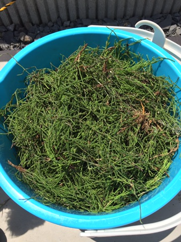 バケツ2杯分のスギナを駆除しましたwww流石に量が多すぎるのと奴らへの怒りと暑さとで意識が朦朧としましたが何とかやりとげました。