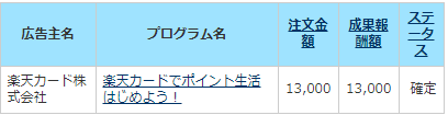 私が最近行ったセルフバックの楽天カードは普段だとカード成約953円5000ポイント付与なのですが、私が成約したキャンペーン時はキャッシュバック13000円の8000ポイント付与というものでした。